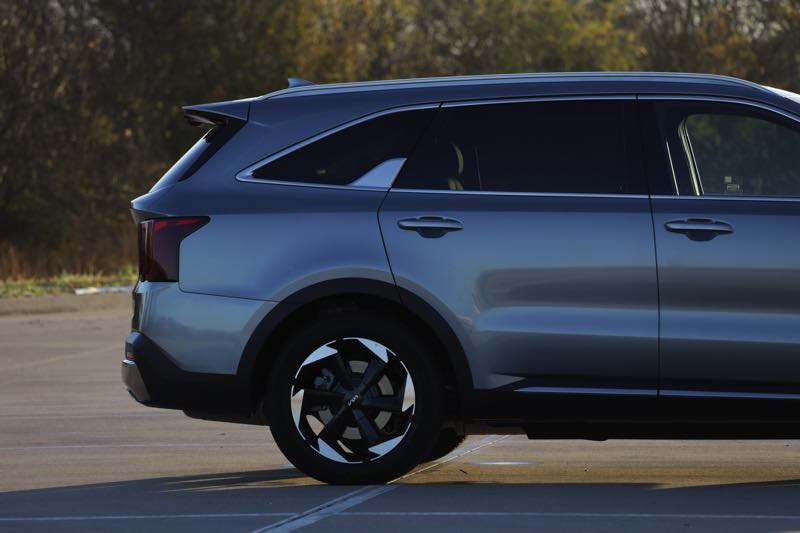 The refreshed Sorento’s design is more upright and squared-off than before, borrowing a few cues from its big brother, the Telluride, and the futuristic EV9. The front end features Kia’s Star Map LED lighting, with amber running lights that give it a distinct signature at dusk. The hood sits tall and confident, while the profile keeps clean lines and subtle sculpting. My test vehicle’s Steel Gray paint didn’t turn heads, but that’s part of its charm — understated, not invisible.