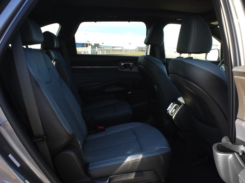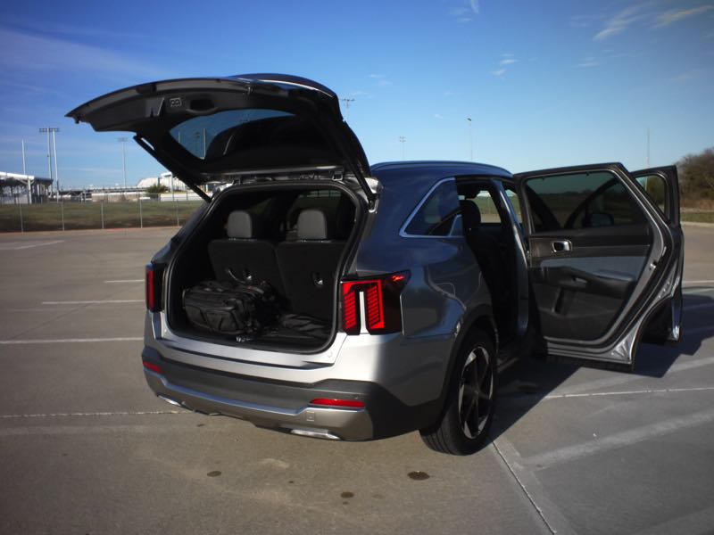With the rear seats folded, the Sorento offers up to 45 cubic feet of space, and the Smart Power Liftgate makes loading a breeze. Cabin storage is plentiful, with deep door pockets and a center console big enough for a tablet. From a family perspective, everything just works — cupholders where you expect them, USB ports everywhere, and visibility that keeps both driver and passengers at ease.
