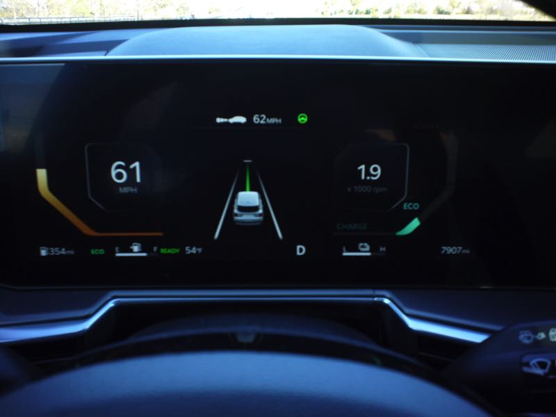 The all-wheel-drive system with a center locking differential adds peace of mind when weather or terrain get tricky. Steering is light but precise, and the chassis feels composed over rough pavement. Ride quality lands firmly in the “comfort” camp — soft enough to absorb expansion joints, firm enough to keep body roll in check. Braking is smooth and confident, with natural-feeling regen that never gets grabby.
