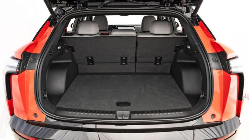 Inside, you’ll enjoy the Blazer EV’s 193 inches of overall length in an interior supplying almost 100 cubic feet of passenger volume, 26 cubic feet of cargo volume behind the rear seat and some 60 cubic feet if the rear seat is folded. I threw my road bike in back for a Saturday morning ride, and the cargo area would have almost accommodated a second bike within the same spot. And notably – for those going to the airport with overpacked, extra-large luggage – the load height is acceptably low.